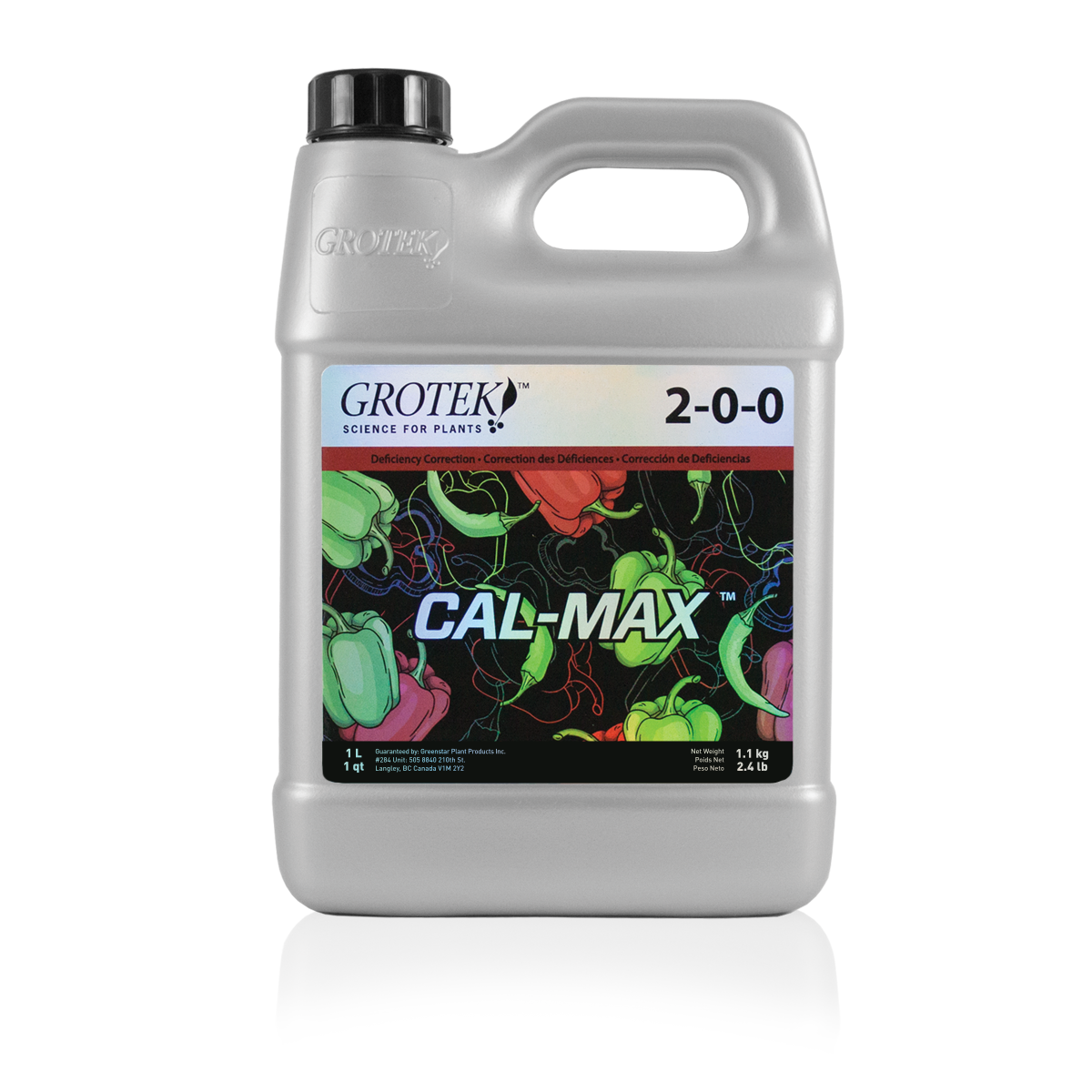 Cal-Max™ works to charge soilless media and bring plants back from common minor nutrient deficiencies resulting from nutrient imbalance, rapid growth, or overly humid conditions. A must for growers using coir based soils. Available nitrogen fuels chlorophyll and protein production to quickly re-green starved plants. Chelated iron adds more deficiency fighting power for lush green growth. Added calcium helps to improve plant vigor and assist in times of peak growth.